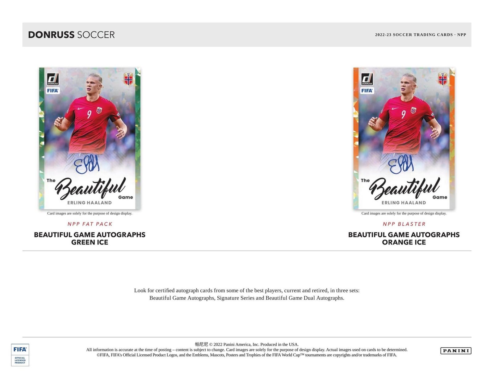 AUTOGRAPH CARDS: Look for ceritfied autograph cards from some of the best players, current and retired, in three sets: Beautiful Game Autographs, Signature Series and Beautiful Game Dual Autographs.
