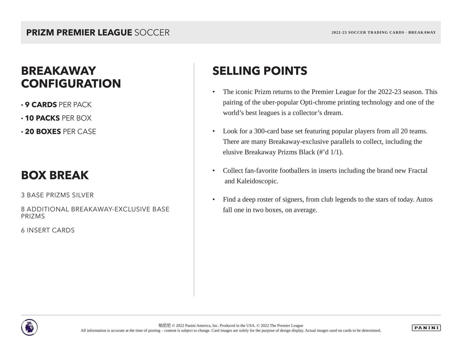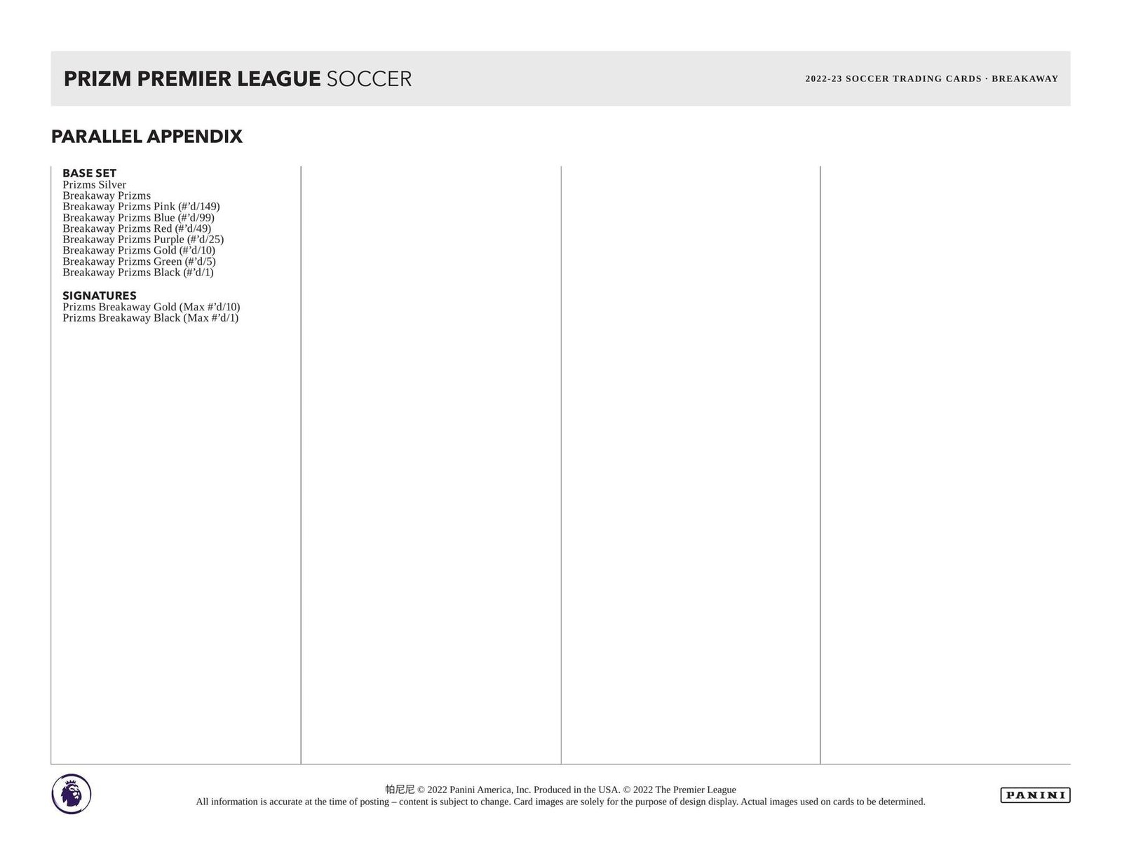 BASE BREAKAWAY: The Prizm base set is comprised of 300 cards, featuring players from each of the 20 Premier League teams.