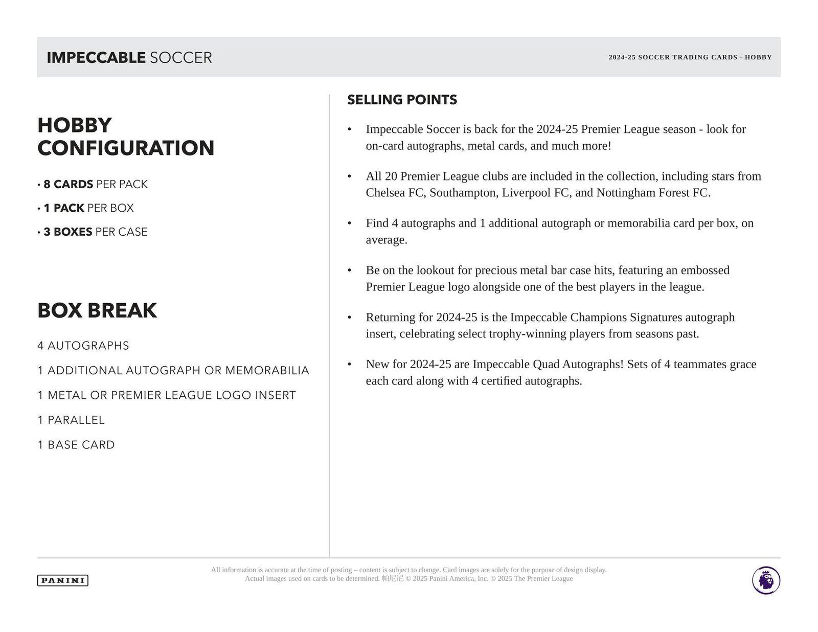 Impeccable Soccer is back for the 2024-25 Premier League season – look for on-card autographs, metal cards, and much more!