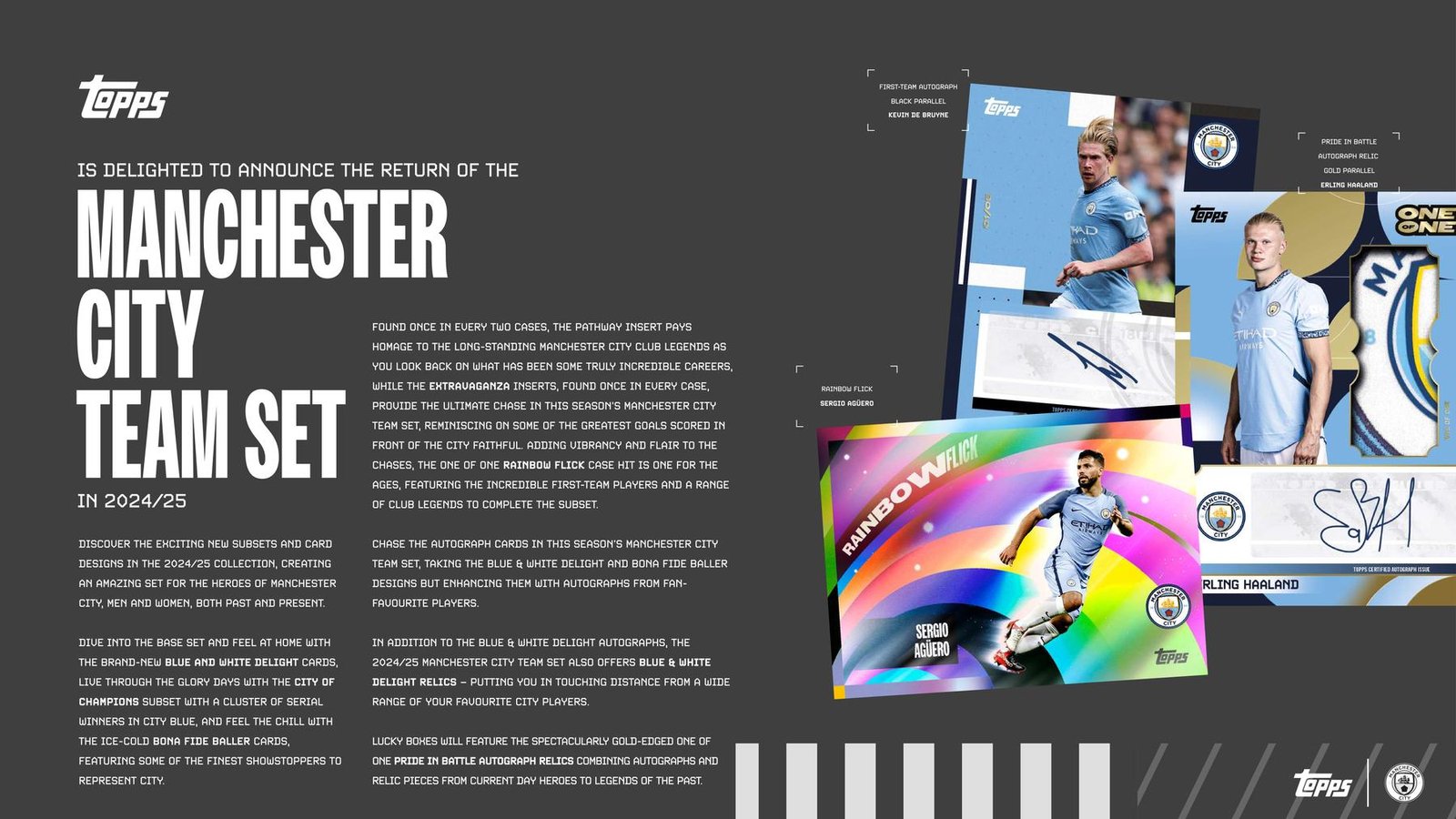 Discover the exciting new subsets and card designs in the 2024/25 collection, creating an amazing set for the heroes of Manchester City, men and women, both past and present.