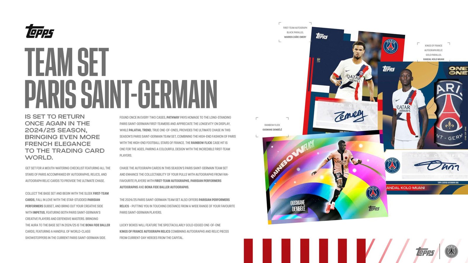 Get set for a mouth watering checklist featuring all the stars of Paris accompanied by autographs, relics, and autograph relic cards to provide the ultimate chase.