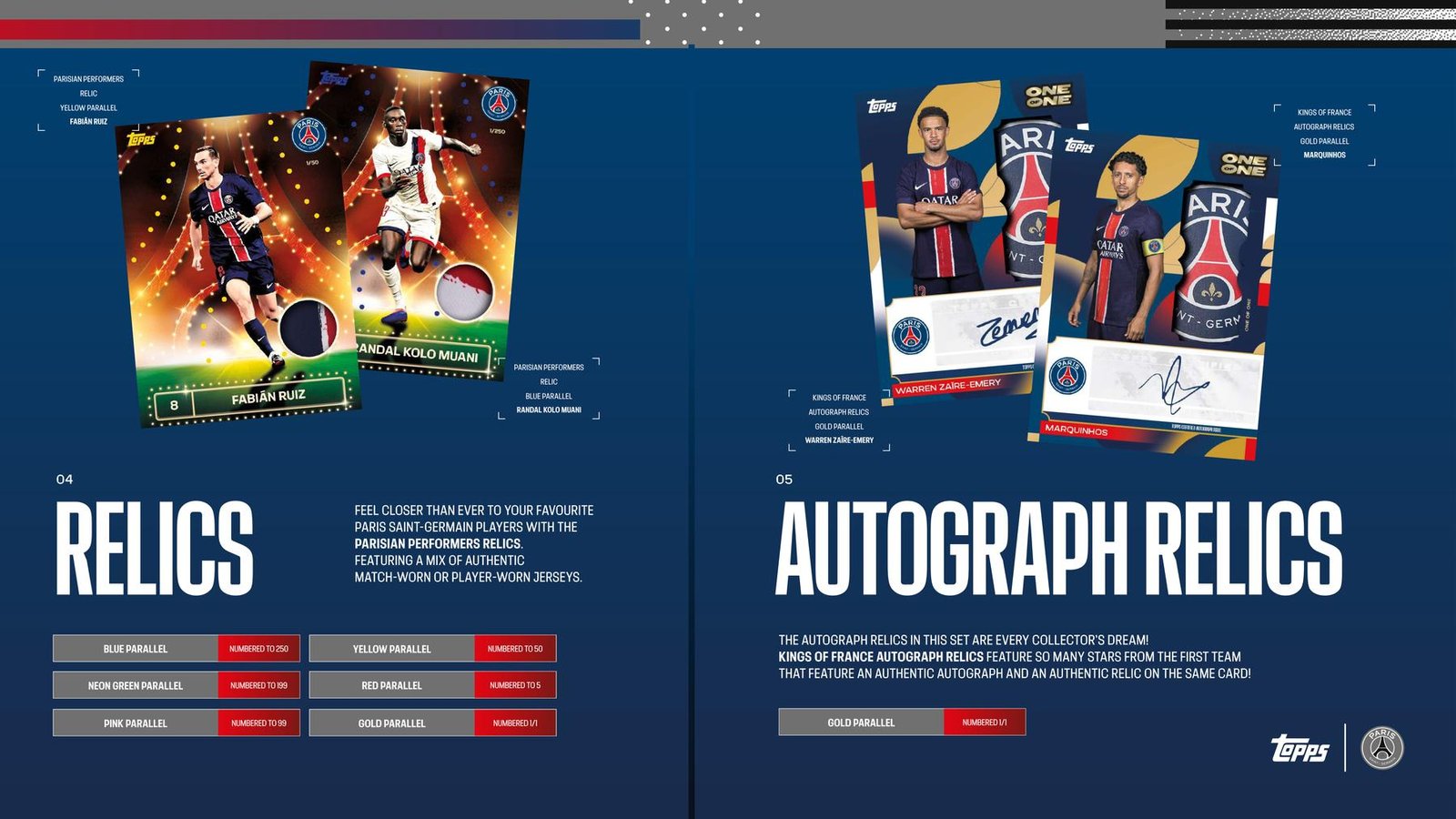 The 2024/25 Paris Saint-Germain Team Set also offers Parisian Performers Relics – putting you in touching distance from a wide range of your favourite Paris Saint-Germain players.