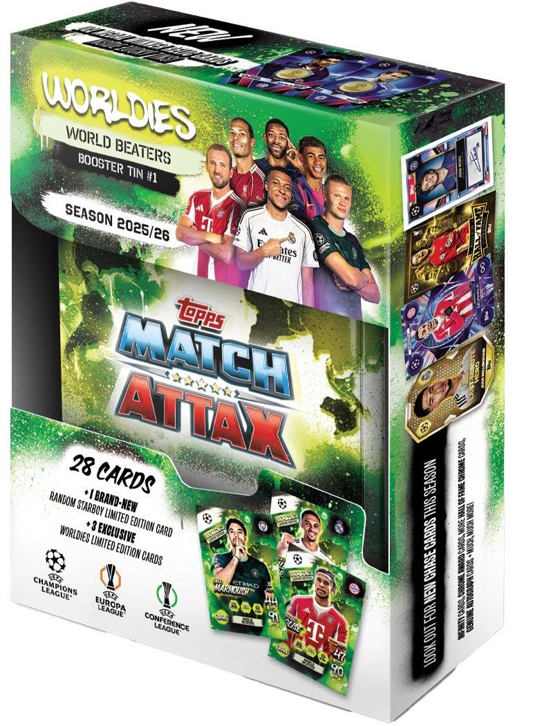 UCC Match Attax returns for the 25/26 season with a thrilling new collection featuring world class players from the UEFA Champions League, UEFA Europa League and the UEFA Europa Conference League. With 524 brand new cards to collect from exciting new categories such as Leaders, Cup Champions, Showboats, Magic Memories, Stealth Strike and Counter Attax, plus returning favourites such as Heritage, Team Badges, Chrome Shield, 100 Club and the unbeatable 100 club, these incredible cards give you everything you need to build a truly incredible collection. Look out for Black Edge cards, Infinity cards, Platinum Pull cards, Hall of Fame Chrome cards, Black Gold LE’s, the new Red Hot Yamal card and the Ice Cole Palmer cards to take you collection to a whole new level.