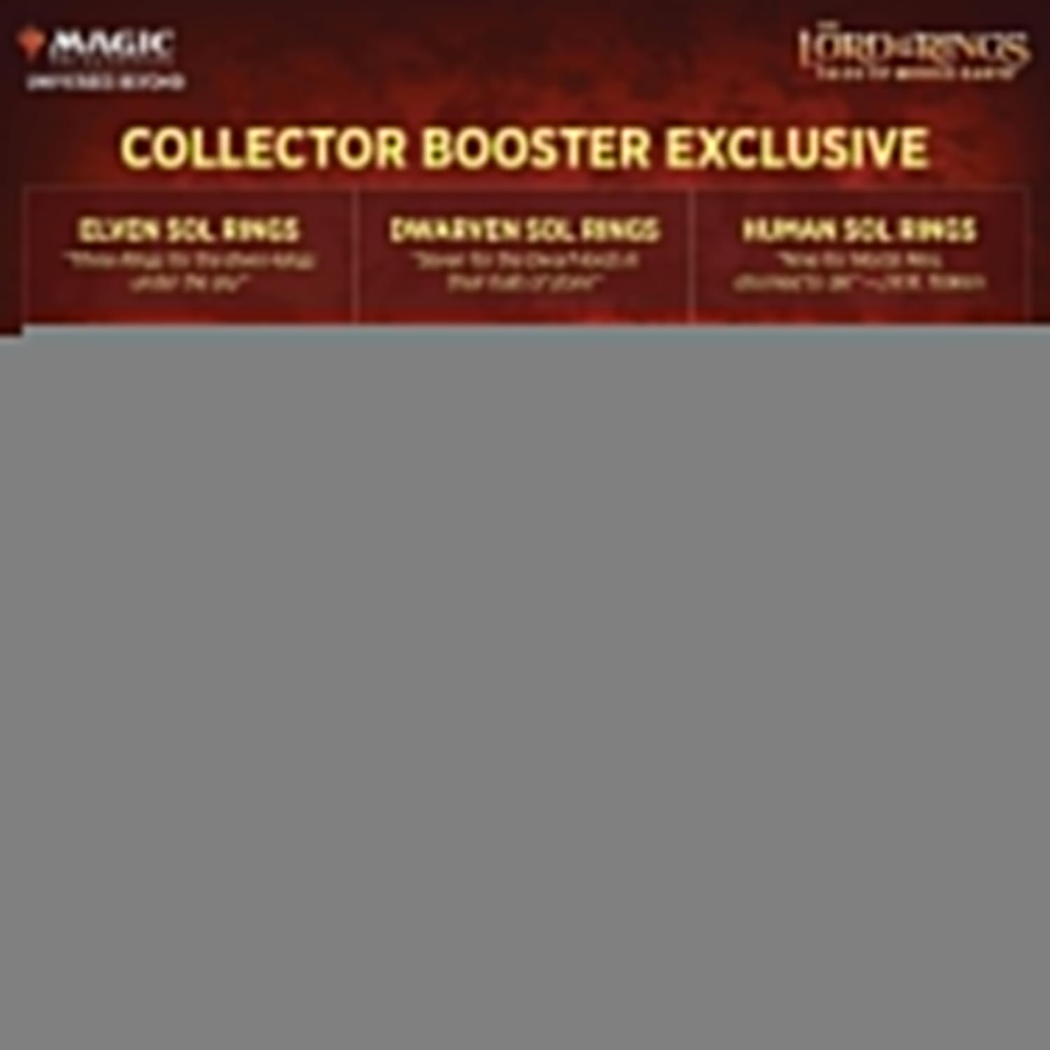 Will you find the One Ring? Collector Boosters are the only packs that may include Serialized Elven, Dwarven, or Human Sol Ring cards, offering a truly rare and powerful addition to any collection. Each pack contains at least one Borderless Scene card, allowing you to assemble breathtaking panoramic artwork from iconic moments in The Lord of the Rings.