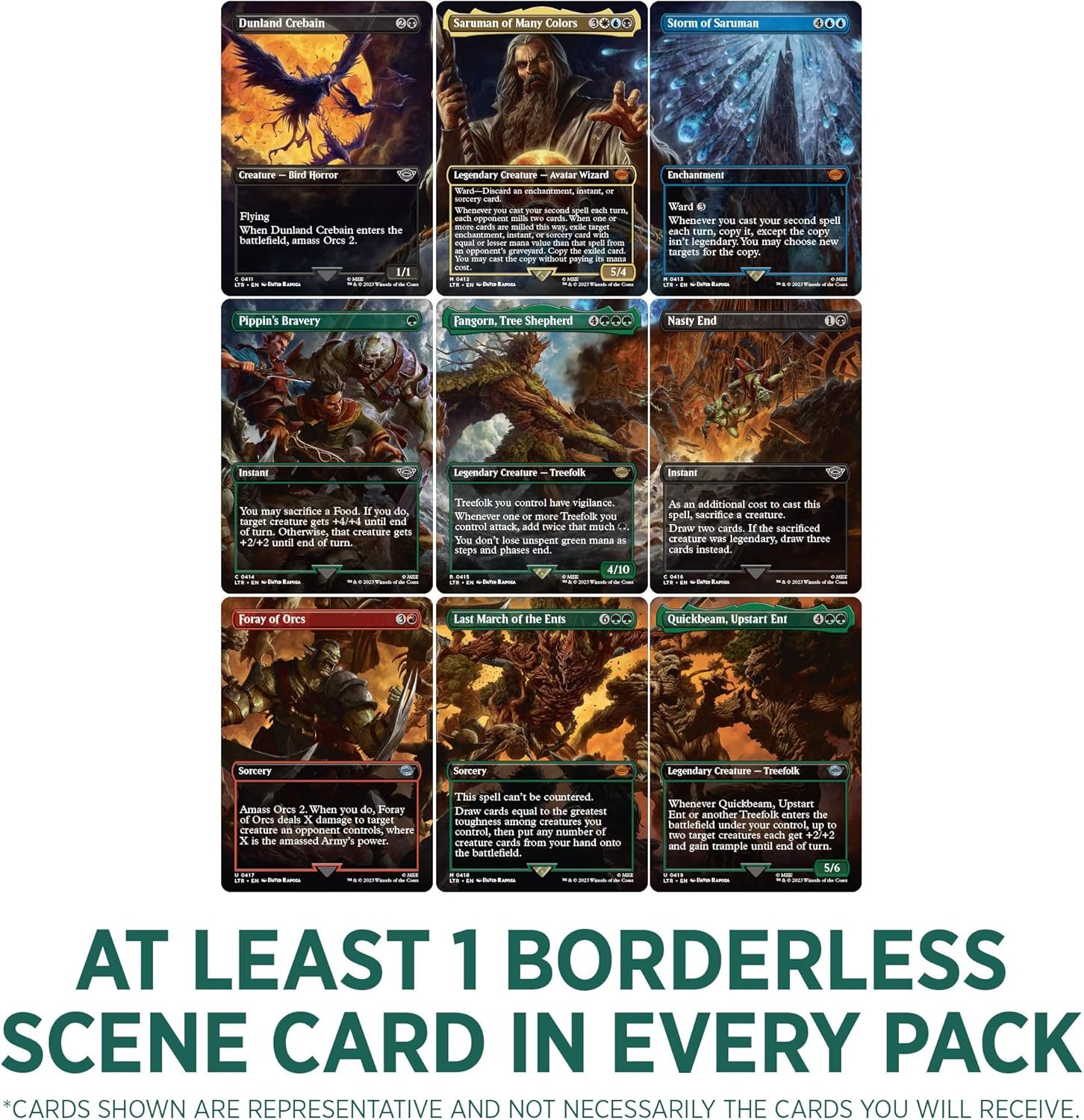 - Each pack contains at least 1 Borderless Scene card for panoramic artwork.