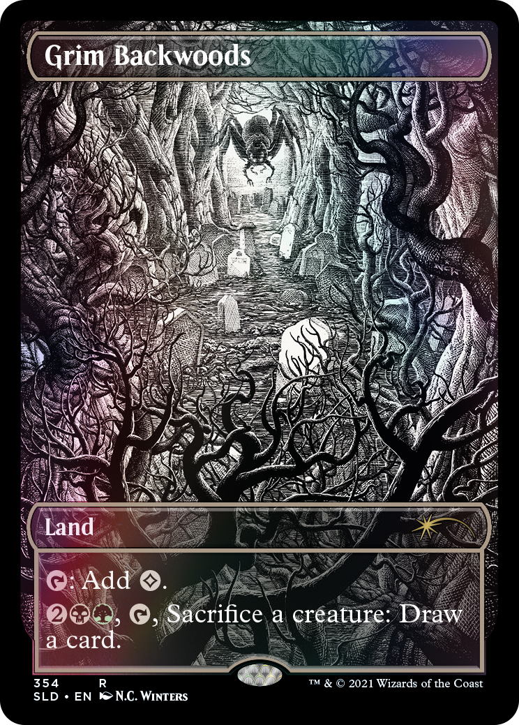 Experience ten classic Innistrad utility lands in BONE-CHILLING BLACK AND WHITE! Ten of the Midnight Hunt artists reprise their style in the eerie Eternal Night style. Alayna Danner, DZO, Nico Delort, Daria Khlebnikova, Rio Krisma, Dan Mumford, Kerby Rosanes, Jessica Seamans, Robbie Trevino, and N.C. Winters remind you that the only thing to fear is fear itself—and these lands!