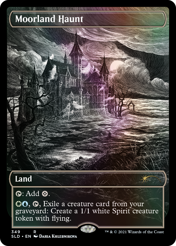 Experience the bone-chilling allure of ten classic Innistrad utility lands reimagined in haunting black and white. Witness the mastery of ten Midnight Hunt artists as they bring these lands to life in their own unique and spine-tingling style.