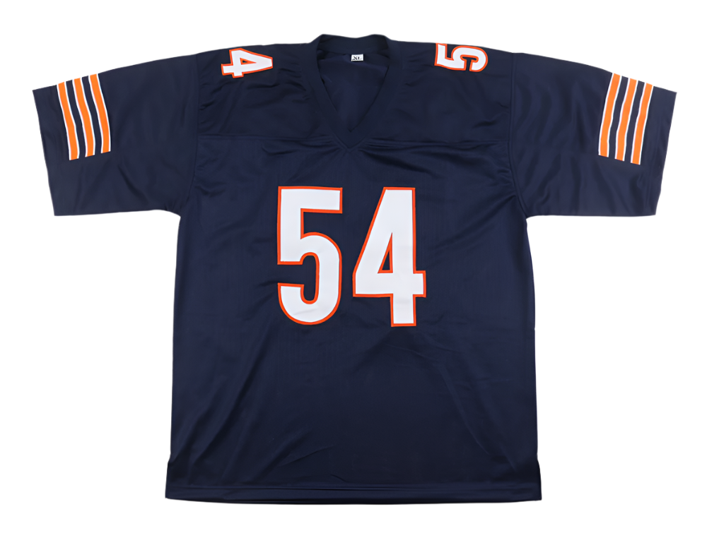 Custom jersey. Everything sewn on, size XL. Hand-signed and inscribed by Brian Urlacher (HOF) of the Chicago Bears.