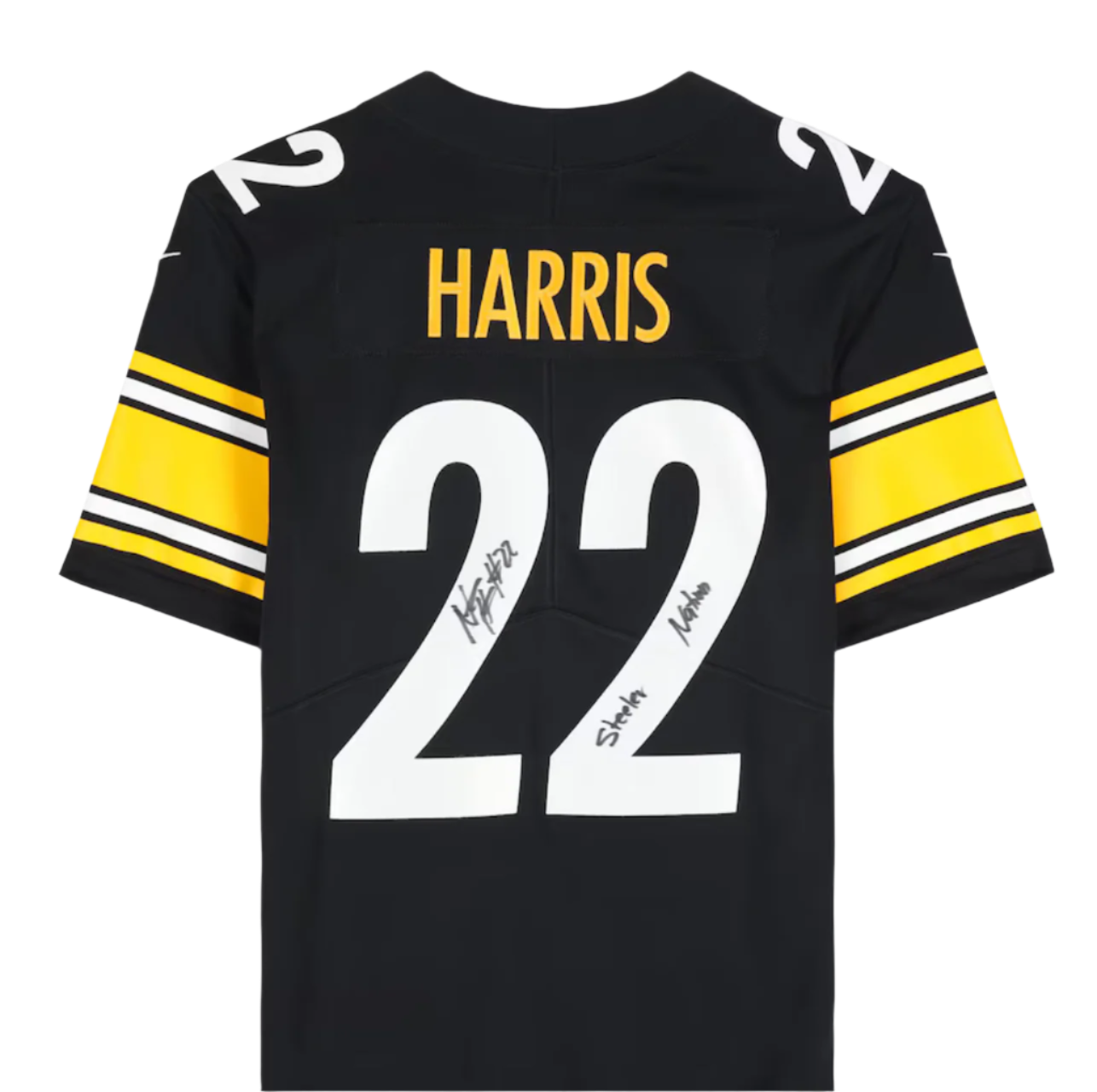 - Najee Harris Pittsburgh Steelers Autographed Fanatics Authentic Black Nike Limited Jersey with “Steeler Nation” Inscription.