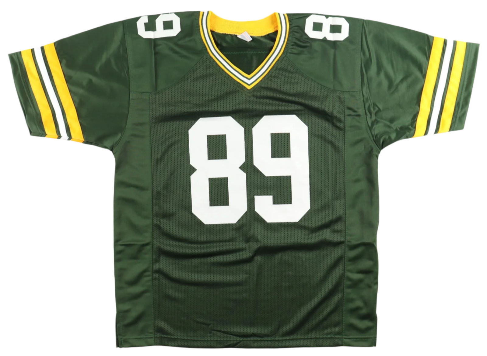 Custom jersey with everything sewn on, size XL. Hand-signed and inscribed by Dave Robinson (HOF 2013).