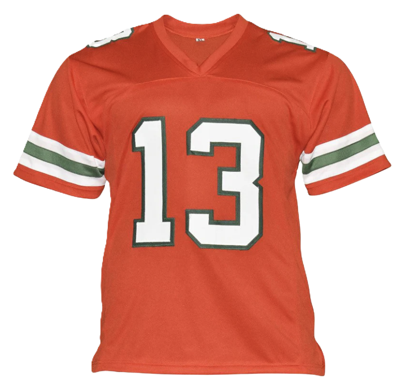 • A collegiate style orange custom replica football jersey autographed by Gino Torretta and authenticated by Beckett
