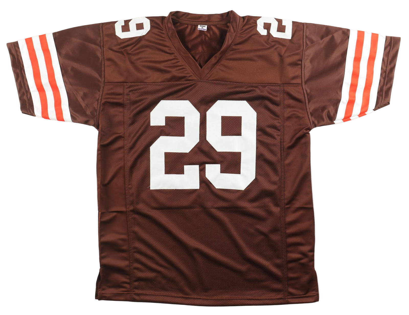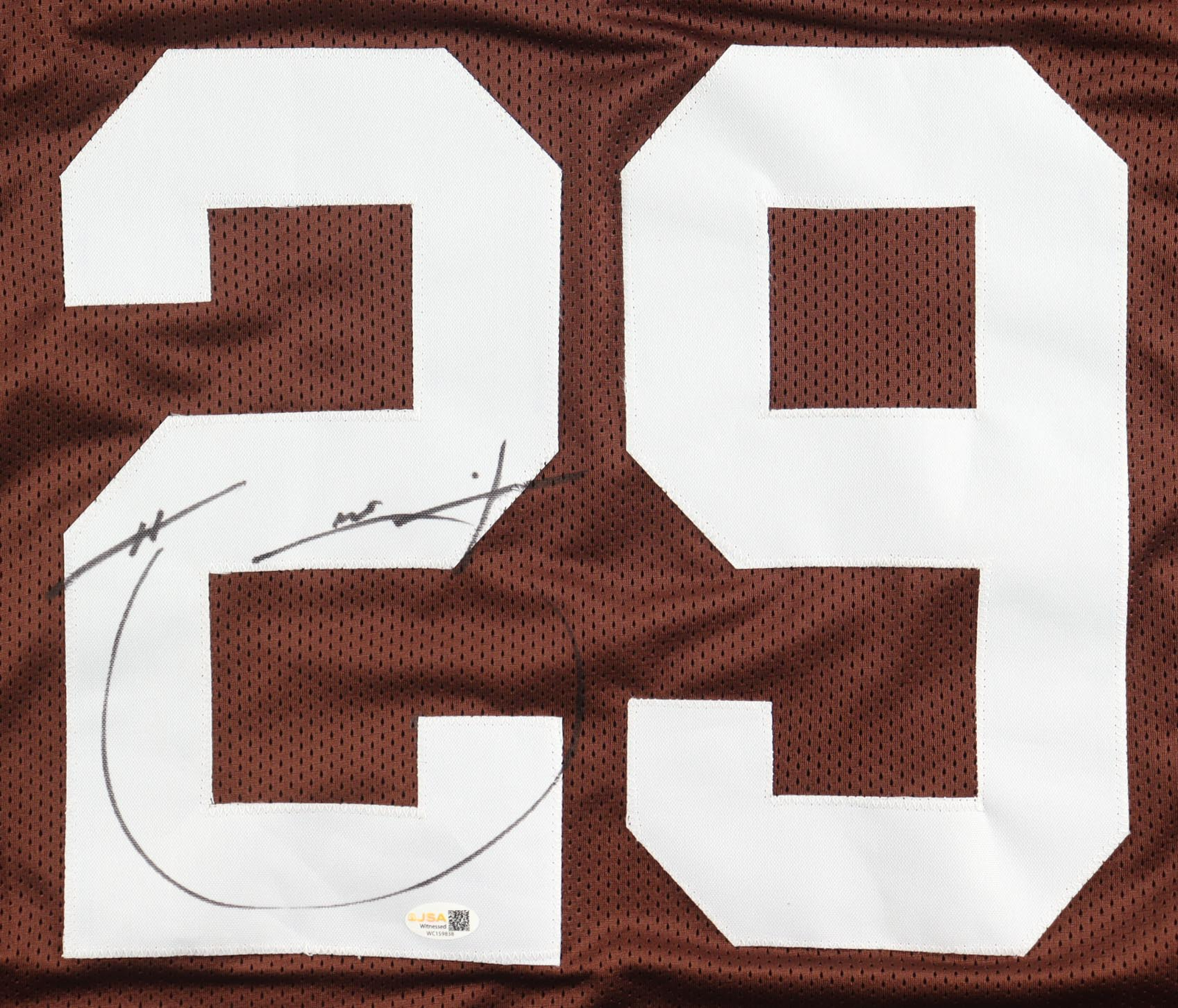 Custom jersey with everything sewn on, size XL. Hand-signed by Hanford Dixon.
