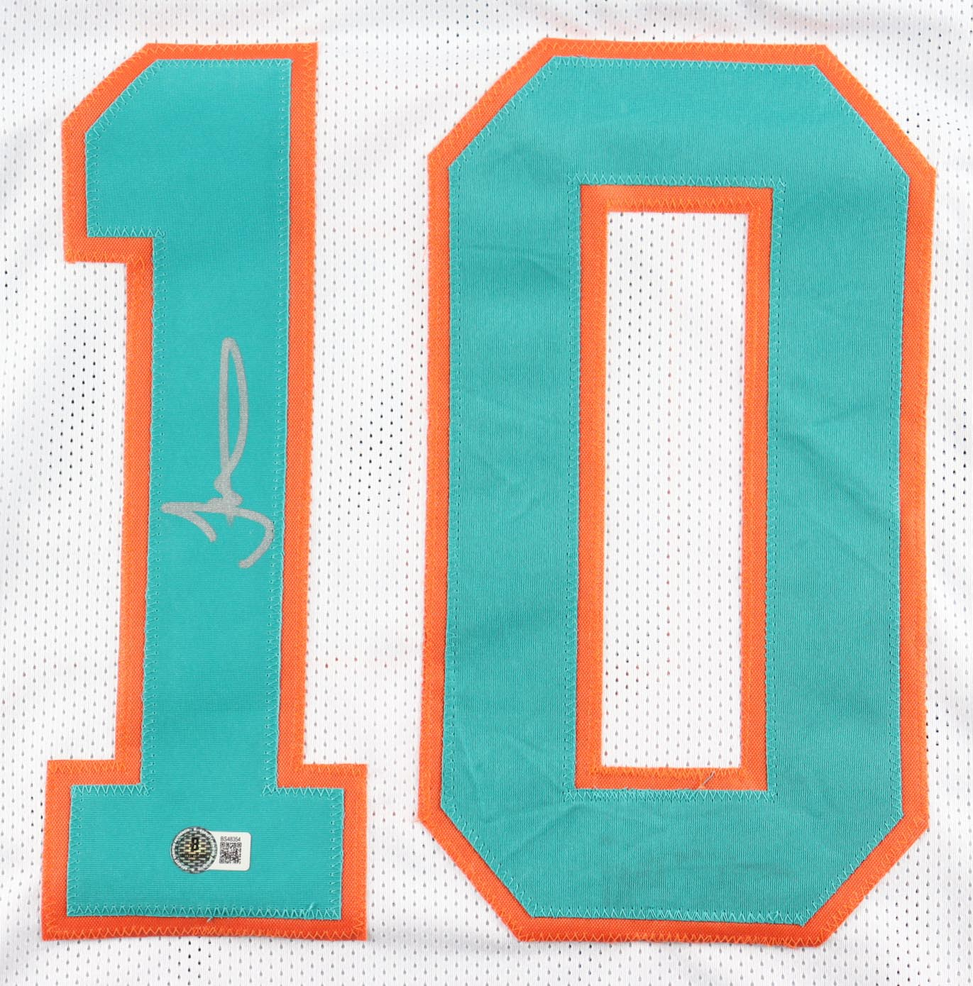A professional style custom jersey with everything sewn on, size XL. Hand-signed by Tyreek Hill.